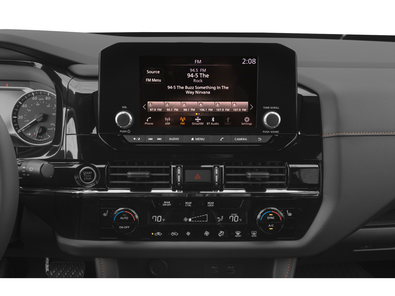 - Radio: AM/FM Audio System w/NissanConnect -inc: 6 speakers, Apple CarPlay and Android Auto, 8" color display w/multi-touch control, SiriusXM satellite radio w/advanced audio features, 2 illuminated front USB connection ports (1 type A, 1 type C) for iPod interface and other compatible devices, Bluetooth hands-free phone system, streaming audio via Bluetooth, hands-free text messaging assistant and Siri Eyes-Free/Google Assistant voice recognition